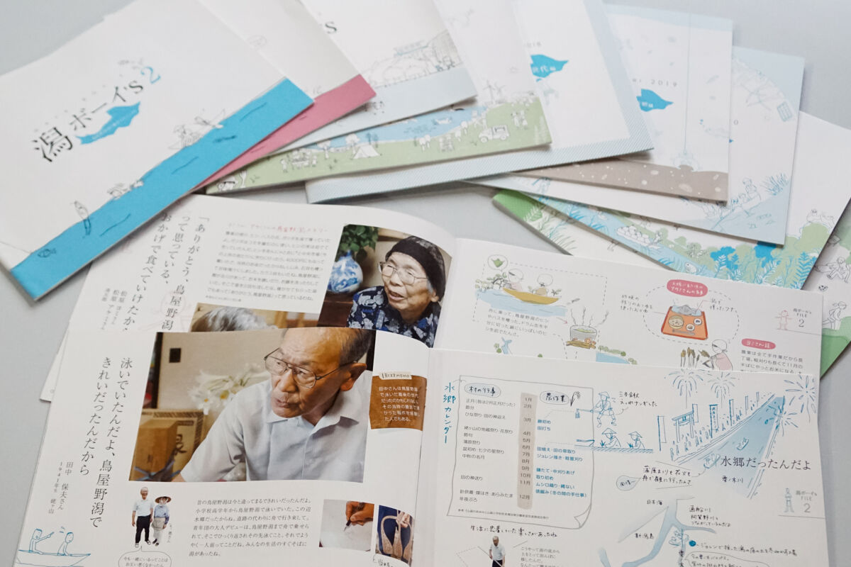 折しもその頃、鳥屋野潟周辺でゴミ拾いを続ける男性と出会う。飲み水にも使われていた「きれいだった鳥屋野潟」の姿を知るその男性のお話を編纂し、地域住民や学校に配布したのが、本取組みのスタート地点となる「潟ボーイ’s(2012年~)」である。
