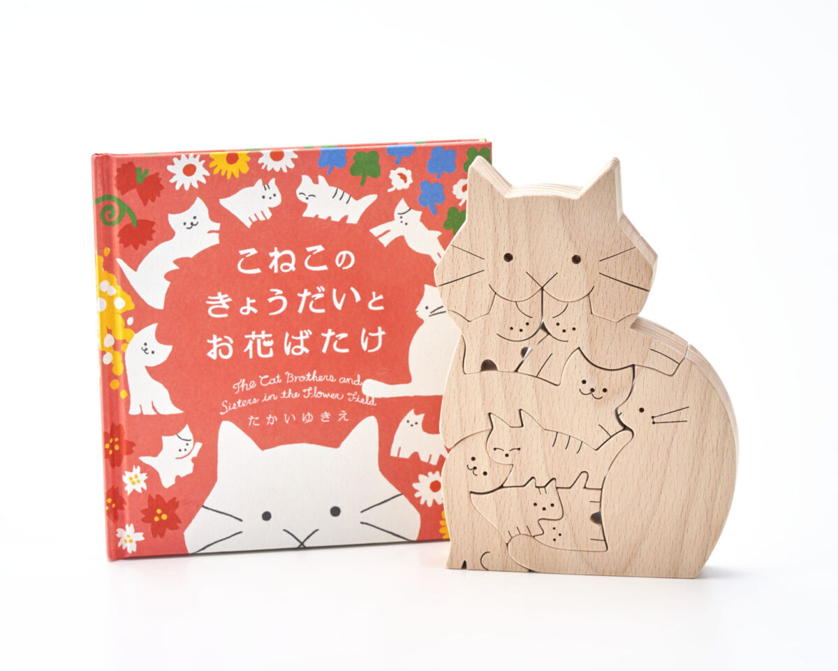 また、2024年5月には新商品「こねこのきょうだいとお花ばたけ」を発売。情報発信効果を高めるため、初の個展となる「くみ木の絵本作家 たかいゆきえ絵本原画展(2024年8月16日~25日、まちトープ カフェスペース(燕市宮町2-26)にて)」を開催。