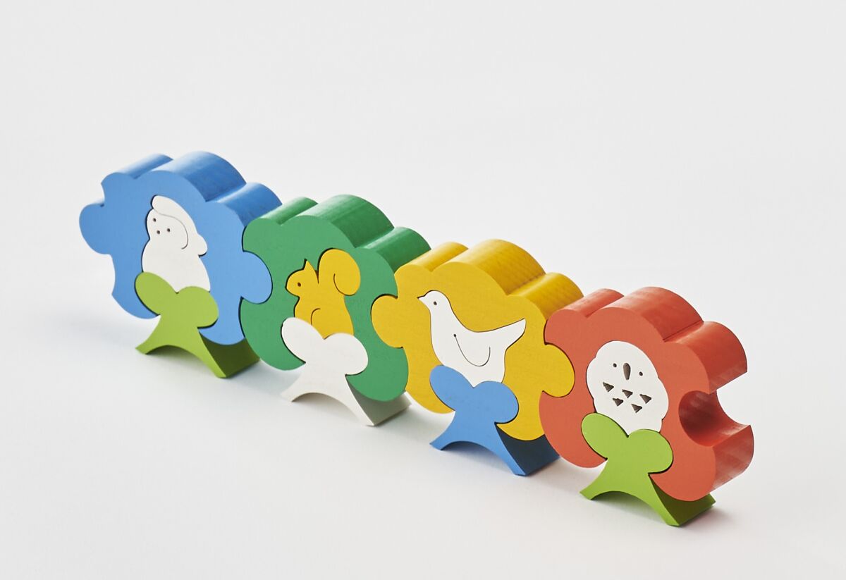 単なる「木製パズル」として捉えられてしまうと、手作業により高価となってしまう組み木で十分な収益を上げられない。この難易度の高い課題には、同氏のクリエイティブなコネクションにより 「触れる(組み木)」×「読む(絵本)」×「見る・聞く(歌とアニメーション)」を束ねたコンテンツとして発信する手法をとった。