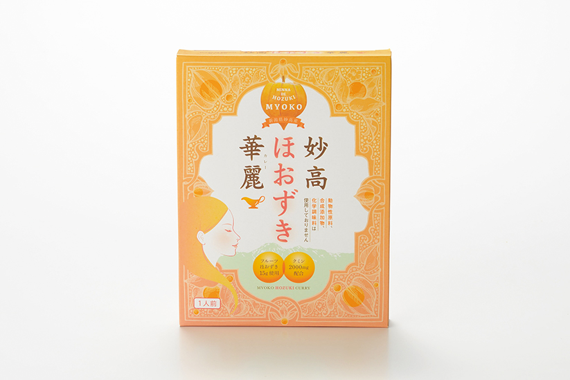 妙高山の豊富な雪どけ水と、森の栄養で育った芳醇なほおずきの実が口の中ではじける楽しい食感。南国フルーツの香りとスパイシーで栄養価の高いクミンがたっぷりのまろやかなこだわり華麗(カレー)です。合成添加物・化学調味料を使わず、厳選した植物由来の材料のみを使用しています。アレルギー物質(27品目)を含まないため、お子様からお年寄りまでみんなで安心して美味しく召し上がっていただけます。脳の活性化や病気の予防・改善、ダイエットに効くと言われる朝カレーにもお薦めです。