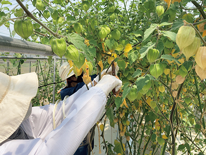 カレーに使用しているほおずきは、1粒1粒手摘みにて収穫しています。