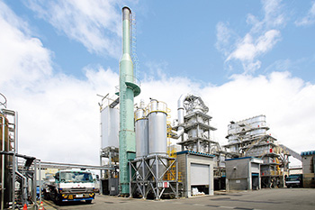 2号炉は、流動性・粘性の高い廃プラスチック類、油泥、汚泥、高い燃焼効率を必要とする木くず、紙くずなど、幅広い廃棄物を焼却できるのも特徴。「1号炉よりも処理できる品目が増えました。県内で大きな焼却炉を持っている事業者が少ないこと、当社でしか処理できない廃棄物があるということで、県内や関東圏のお客様から仕事をいただくことが多いです」。焼却した際に出る排ガスはダイオキシン類が再合成しないように制御し、大型のバグフィルターを最後に通すことでクリーンな空気にして排出するなど、環境に配慮した万全な管理体制を整えている。