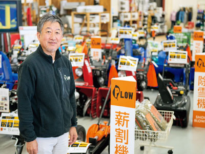 地域に根差した農機具店として1930年に創業し、eコマース黎明期の2000年から作業機械・農業機械のネット販売をスタートしたホンダウォーク。2011年からは、製品販売と修理体制を整えた実店舗・プラウ(PLOW)を新潟・山形・長野・福島で展開し、オリジナルブランドの薪割り機、芝刈り機など自社製品の開発にも力を入れている。「“野外仕事をもっと楽しく”というのがプラウのスローガン。優れた機能を持つだけでなく、楽しく仕事ができるかっこいい製品でなければと考えているので、色や形にもこだわっています」と石塚代表。さらに、「作業機械や道具は売って終わりではなく、使用中のアフターサービスが重要。最近は個人売買によるトラブルや、商材自体が複雑化しているため、“修理難民”と呼ばれる方々からの依頼がとても多くなっています」と話すように、他店の購入品も含めた作業機械の修理を積極的に受け入れている。
