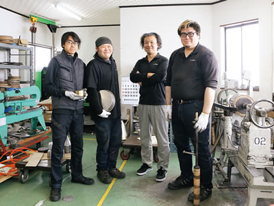 現在、燕三条地域でへら絞りを行う会社は10社程しかなく、そのほとんどが後継者がいないという状況。しかも70代、80代の職人がほとんどだという。「10年くらい前は私が一番の若手。年配の職人が辞めていった影響で私に仕事の依頼が増え、ついにキャパオーバーする状況になったとき、この地域の将来について不安を感じました。また、私の息子が小学生のとき、“将来自分もお父さんの仕事をやりたい”と言ってくれたのですが、子どもがあと十数年成長する間に年配の職人がいなくなり、自分しかこの仕事をしていなかったら、子どもに技術を引き継ぐ環境が無くなってしまう。そうなる前に、この技術を何とか継承していかないといけないと思ったのです」と話す本多代表。そこで若手職人を育てることを決意し、会社の設立とともに人材を募集。全く経験のない20代、30代の2人を採用し、自ら技術の指導にあたった。