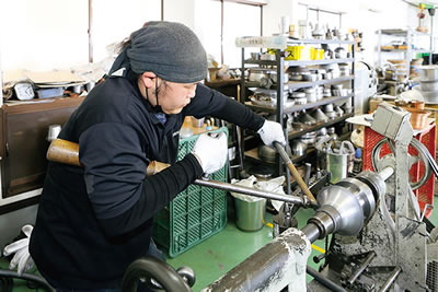 また、同社では社員に対して3回の面接を行う。1回目は入社時の面接。2回目の面接では、へら絞り職人、機械オペレーターのどちらを希望するかを聞き、3回目の面接では、将来独立するか否かを聞く。独立を目指す職人には経営のノウハウについても教えていくという。