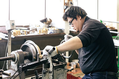 手仕事の技術継承を図る一方、同社は自動研磨機やスピニングマシンなど各種加工設備も備え、社内で一貫加工ができる体制を整えている。「燕は昔から分業制で、何社かで分業することで難しい仕事や納期にも対応できていました。でも今はこの分業制が崩れてきて、我々が加工したものの次の工程を協力工場に依頼したくても、その工場がしっかり技術を継承していないと、大量の発注に対応できないこともある。そうすると仕事がスムーズに流れていきません。そこで自社の商品を欠品させないため、自分たちでできる仕事があればやろうということで、3年前から機械加工も取り入れました」。