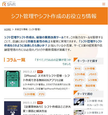 業務や業界に関するコラムをネットで配信。シフト管理、生産性向上といったワードで検索すると上位にヒットし、かなりのアクセス数がある。これを見た企業からシステムについての問い合わせが入るというのが、一つのパターンになっている。