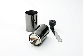 デザイン性も重視した、コーヒーミル。2017年のIDSデザインコンペにも出品した。セラミックの刃は摩耗しにくいため、使い始めの挽き味が持続する。