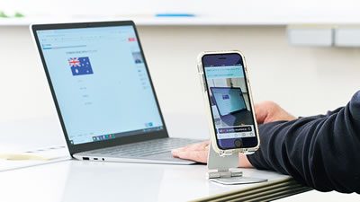 試験を受ける前にパソコンとスマホをペアリングし、スマホはパソコン画面や手元が見えるようにセッティングする。試験当日のトラブルをなくすため、受験者には必ず数日前にリハーサルを行ってもらう。