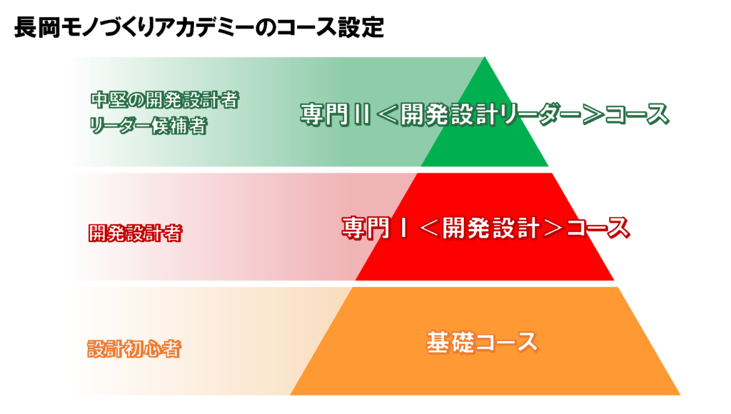 NICOテクノプラザでは、モノづくりにおける機械設計技術者を養成し、企業の人材基盤の強化を図るため、産学官の連携による人材育成研修「長岡モノづくりアカデミー」を開催しています。人材育成の一助としてご活用ください。
