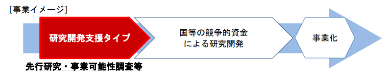 大学・試験研究機関等と共同事業体を組織し、本事業終了後に国等の競争的資金を活用した研究開発を行う取組について、先行研究や事業可能性調査等に要する経費の一部を助成する事業です。 |