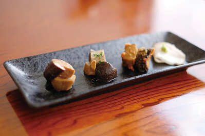 商品化に向けてまず課題となったのが、もともと生産量が少ない天恵菇をいかに確保できるかということだった。そこで、刺身にする際に余ってしまう太い軸を調理してみたところ、普通のしいたけにはない食感や旨味を引き出せたことから、かさの部分だけでなく軸も利用することにした。さらに、南魚沼市で天恵菇のみを一年中栽培する、全国でただ一軒の生産者「牛木きのこ園」からの提供も受けることが決まった。 天恵菇の味付けは、和食からイタリアンまで幅広い料理を提供する同店ならではの技術を活かし、「山椒漬け」「ガーリックとハーブのマリネ」「神楽南蛮味噌」の3種類を考案。小島専務は「味の幅を思いきり広げたいと思い、この3種類を作りました。調味液は全て自社で作っていますし、しいたけのかさと軸とで火の入れ方も変えています」と話す。 商品の完成まであと一歩となった2019年には、マーケティングを目的にフードメッセinにいがたに出展。そこで商工会からよろず支援拠点を紹介され、サポートを受けることになった。「パッケージデザインや名称、価格、見せ方、ターゲットなどについて、いろいろなアドバイスをいただきました」と藍子氏。小島専務も「希少なしいたけを使うため、価格をそれなりに高く設定すると、パッケージが肝になると感じていましたが、自分たちだけで考えるには限界があったので助かりました」と話すように、専門家のアドバイスを受けながら、パッケージや新しいロゴマークのデザイン制作に取組んだ。 こうして初めての自社商品が完成し、2020年10月に販売を開始。翌11月に開催された「フードメッセinにいがた」の6次化大賞に出品すると、グランプリと特別協賛企業賞のJALUX賞のダブル受賞を果たした。「専門家の方々から直接いろいろな意見をいただけて、貴重な体験でした。この受賞で、サポートをしてくれた市役所のみなさんに恩返しできたことが一番嬉しかったです」と藍子氏は語る。