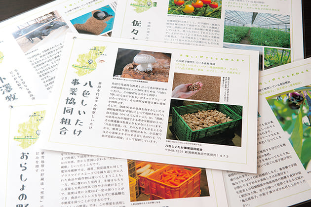 今回のコロナウイルス禍でレストランの売上にも影響があったことから、「山のあわび」が少しずつ認知され、受注も増えていることが心強いという藍子氏。「ぽんしゅ館」をはじめ近隣地域での取扱いが広がり、ECサイトでの販売も開始。最近では新潟伊勢丹の「越品」、市のふるさと納税の返礼品にも採用されるなど、販路が広がりつつある。 さらに、この3月から天恵菇のかさを刺身用に加工した新商品を発売した。「かさの部分を丸ごと1個使っているので、大きさも分かってもらえると思います」「天恵菇は普通のしいたけよりも旨味が3倍あるといわれています。本物のアワビに負けない旨味と食感を感じてもらいたいです」と2人が話すように、希少価値を打ち出した商品を今後は首都圏でも販売していきたいという。 また、地域に密着したレストランとして、地元の食材にこだわってきた同店では、南魚沼・大和地区のさまざまな食材や産地を紹介するマップ、生産者を直接取材したレポートの紹介カードなどを来店者に向けて作っている。「地元の食材や生産者さんの思いを発信していきたいという目標の中に、自社商品もあるのです。私たちが目指すのは、商品を通して南魚沼に興味を持ってもらい、この浦佐まで足を運んでもらうこと。それを目標にこれからも商品づくりをしていきます」と小島専務。この地域にしかない食材を付加価値を高めた商品に昇華させ、南魚沼の魅力を全国に発信していく。