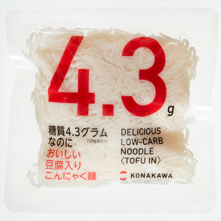 豆腐を練りこんだ、低糖質・低カロリーなこんにゃく麺です。こんにゃく臭を無くしてありますので、袋から開けて水洗いをしたらそのままでも食べられます。サラダ感覚でドレッシングをかけて食べてもよく、また温めて麺類の代わりとしても美味しくいただけます。