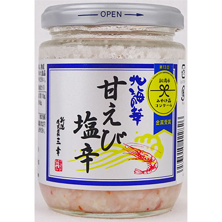 第13回新潟市みやげ品コンクール金賞受賞の実力派珍味。さっぱりとした塩加減とえびの甘みが絡み合います。